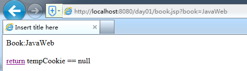我随便选择一个链接(比如JavaWeb),去跳转到book.jsp,第一次访问是没有带Cookie的,所以会调用book.jsp如下的方法,创建了一个cookie,在book.jsp页面中,点击return返回到books.jsp就取出cooks.jsp带过来的cookieValue,然后展现选中的书籍列表即可