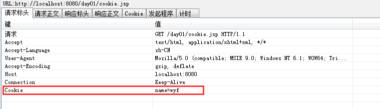 cookie.jsp中代码意思是:如果请求中,没有cookie,就创建并返回,请求中带cookie的话,就输出cookie键值对(name-value)