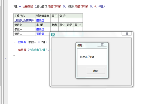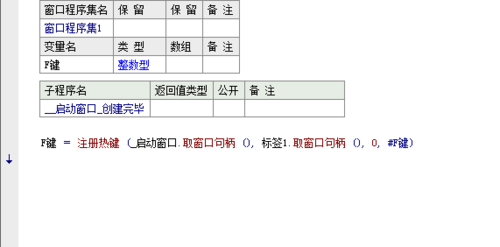 双击启动窗口 进入到启动窗口创建完毕事件子程序 写 注册热键 参数一为窗口句柄 取启动窗口的句柄即可 参数2为标签句柄 用来反馈热键事件 参数3为功能键 比如shift+F键 shift就是功能键 默认值为00是无功能键;1是CTRL键 2是HIFT键 4是ALT键 参数4就是要注册的热键 比如M键 回车键 空格键 都可以 如果执行成功返回热键句柄 这时候可以用一个变量来标记 代码如下
