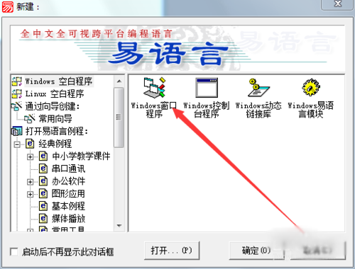 首先 打开易语言 新建一个windows窗口程序 如图