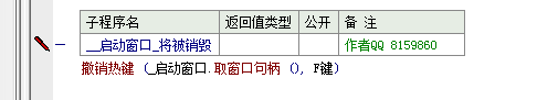 然后 我们再启动窗口将被销毁的时候 一定要撤销注册的热键 命令名为 撤销热键 他有两个参数 参数1为窗口句柄 这时候注意 当撤销的时候 窗口句柄一定要和注册热键时候用的窗口句柄保持一致 否则会失败 参数2为热键标识 写我们注册时返回的那个变量就可以 具体代码如下